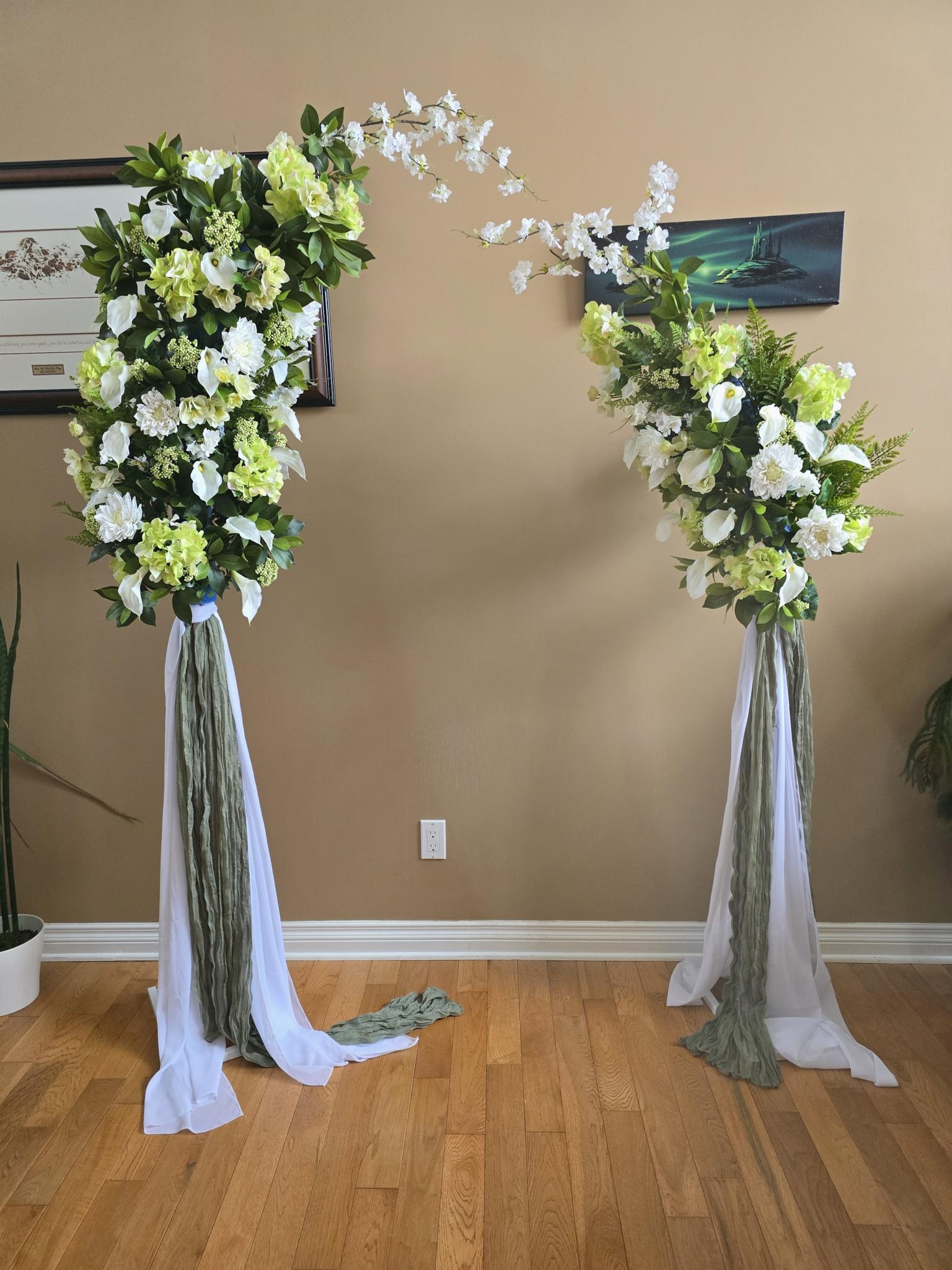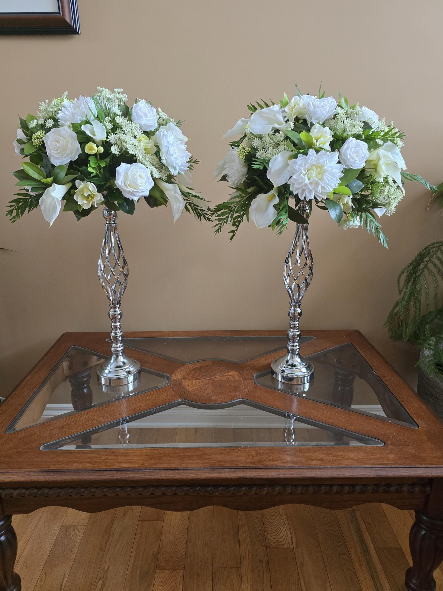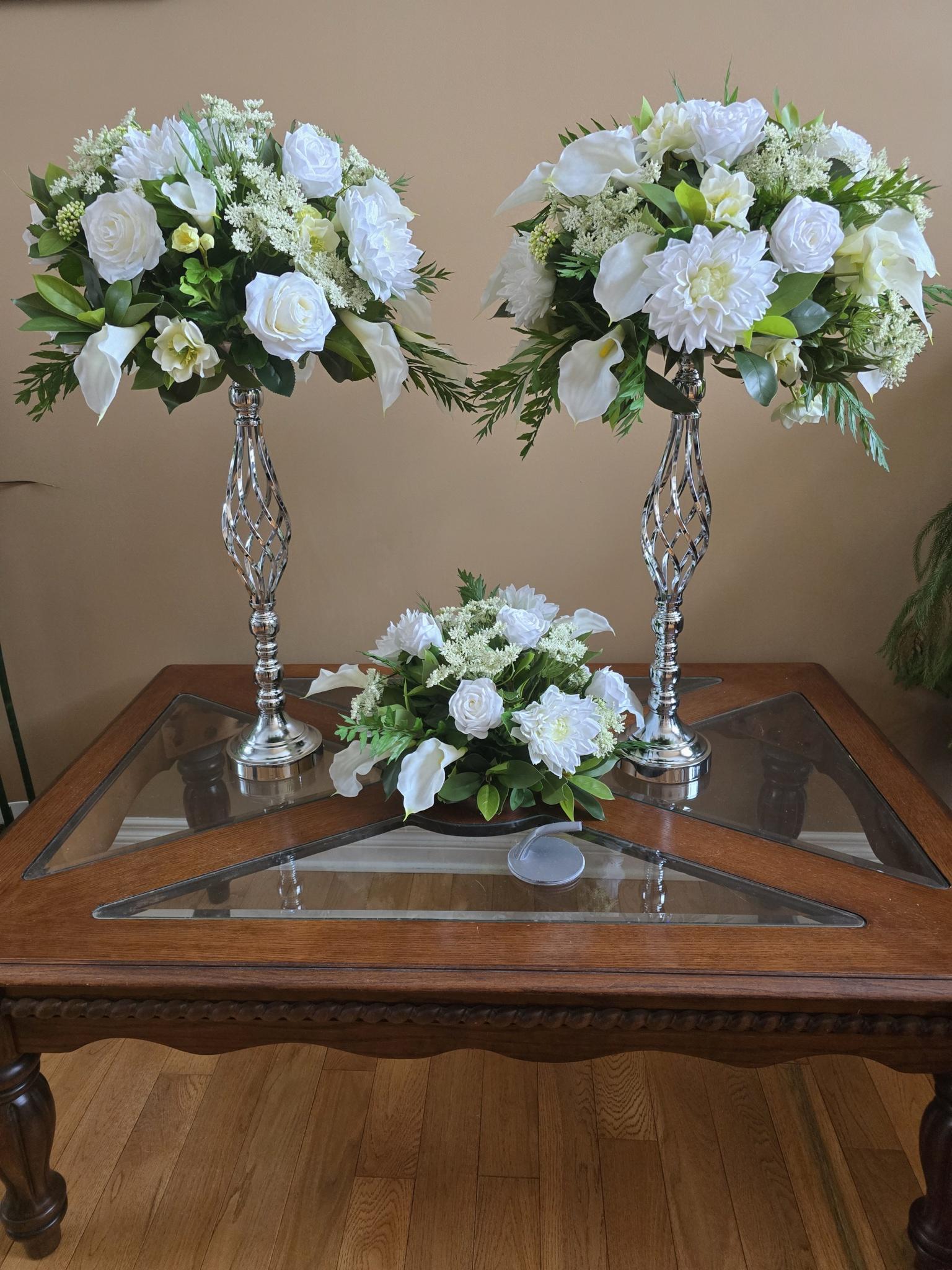 Bouquets are done Custom with the bride in mind and offer rental services for decor items that can be customized to the bridal dream