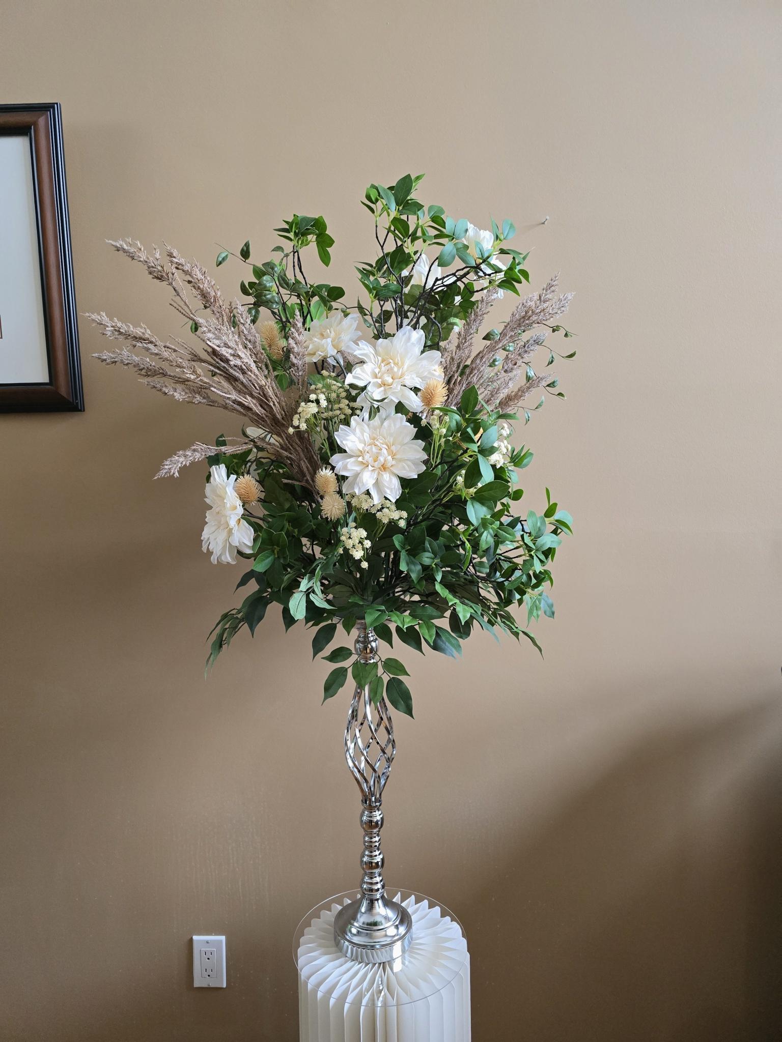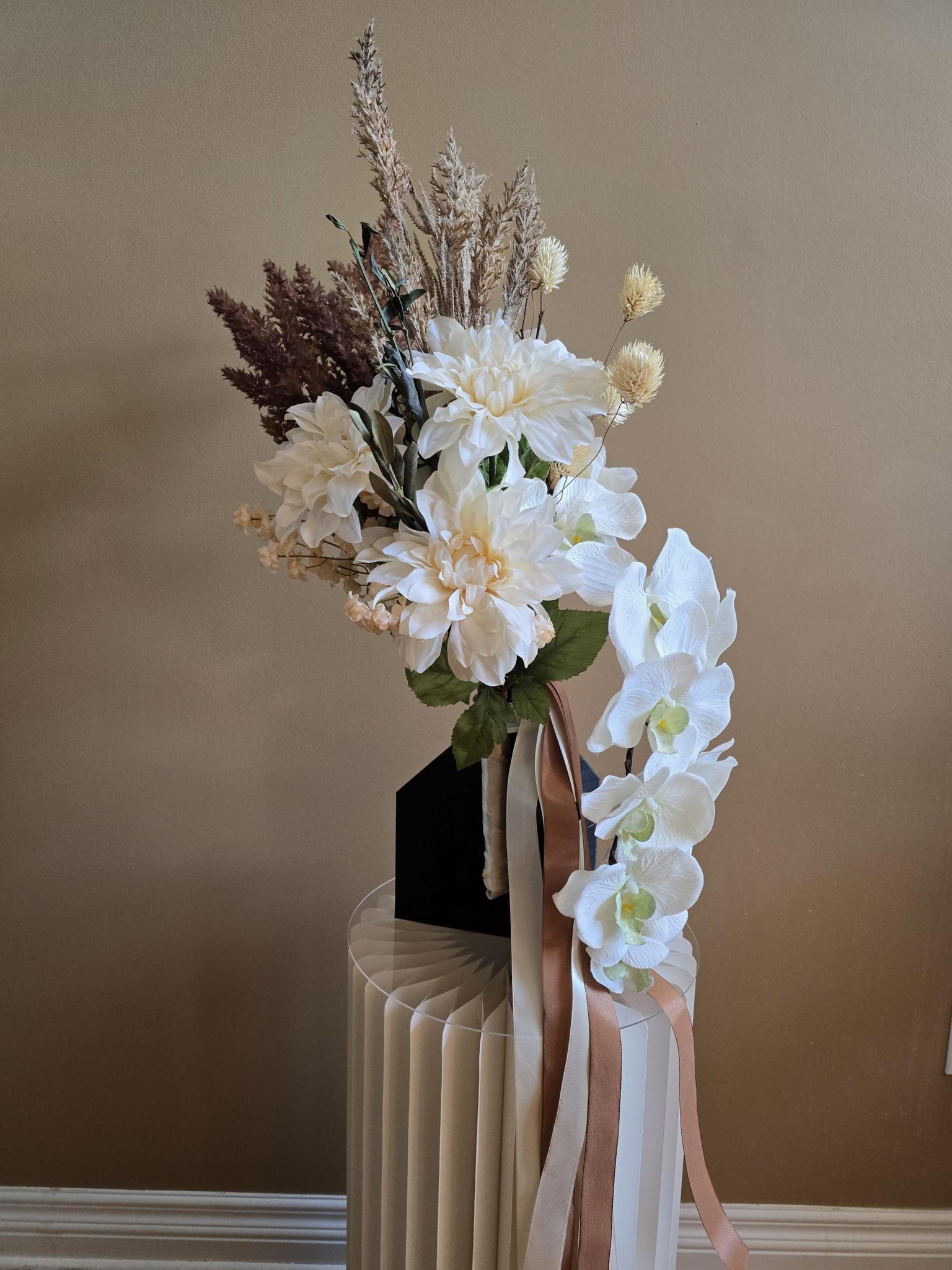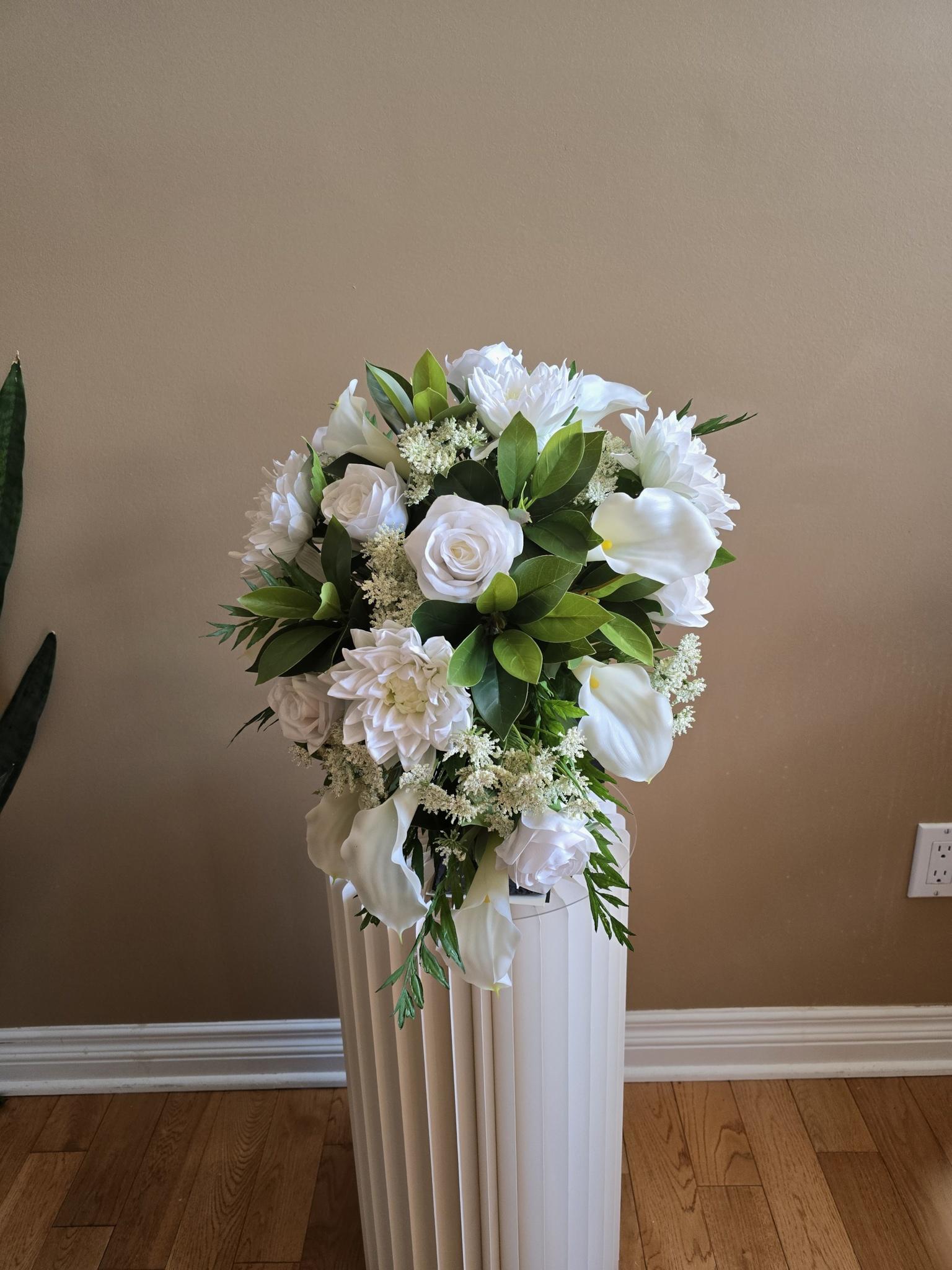 Bouquets are done Custom with the bride in mind and offer rental services for decor items that can be customized to the bridal dream